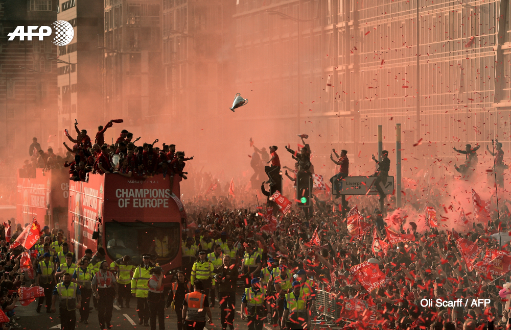 Oli Scarff, de origem britânica, foi nomeado na categoria “Sports-Singles” por sua foto de milhares de torcedores do Liverpool durante o desfile após a vitória da Liga dos Campeões.