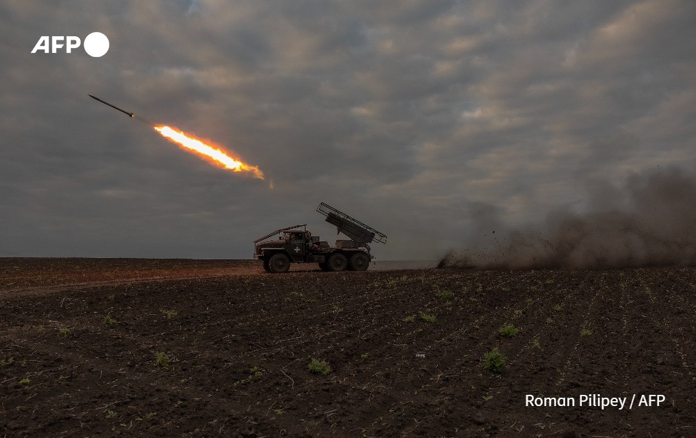 Ukrainian servicemen of the 92nd Assault Brigade fire BM-21 'Grad' multiple rocket launcher toward Russian positions, in the Kharkiv region, on May 15, 2024, amid the Russian invasion of Ukraine. President Volodymyr Zelensky cancelled planned trips abroad over the fresh offensive and the military was sending more troops to Kharkiv to hold back Russian advances, Kyiv said​.
