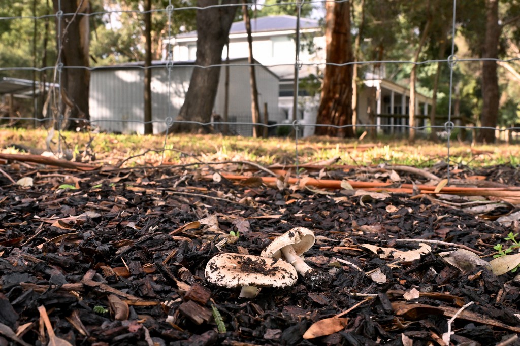 Mushrooms (2nd photo) growing outside the home of Erin patterson in Leongatha on May 20, 2025 © Wiliam West / AFP