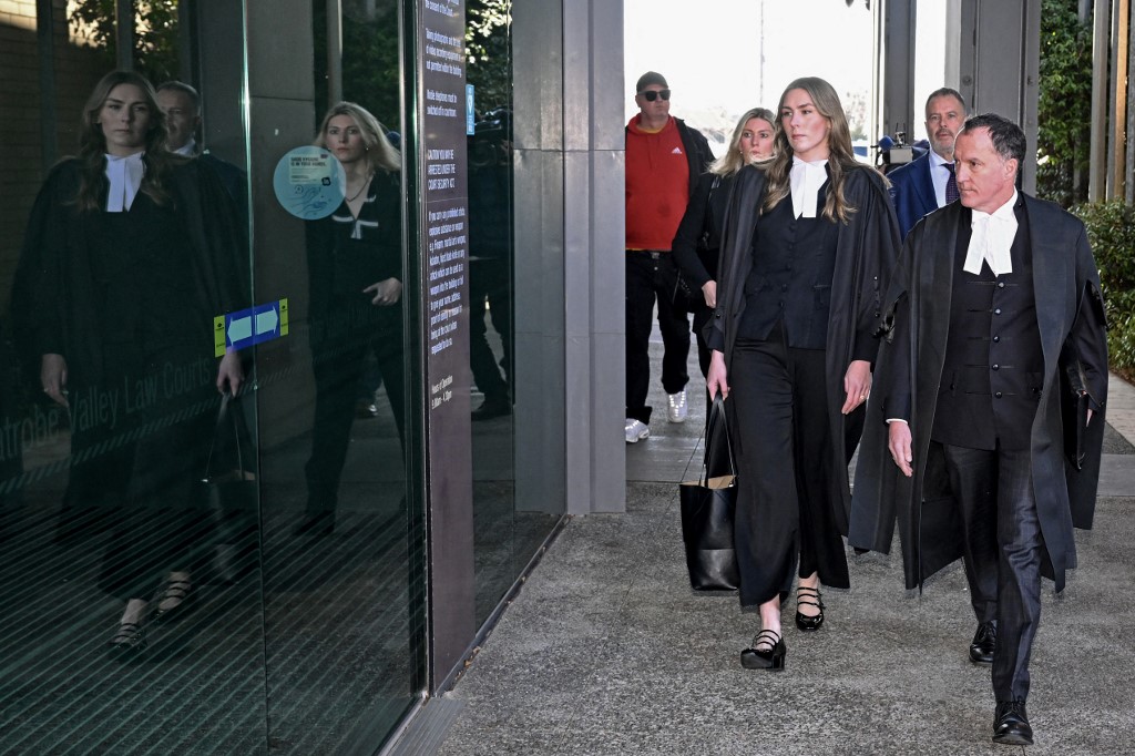 Lead barrister Colin Mandy (R) arrives with (L-R) Lawyer Ophelia Holloway, Barrister Sophie Stafford and Lawyer Bill Doogue at the Latrobe Valley Magistrates' Court in Morwell on July 7, 2025 © William West / AFP