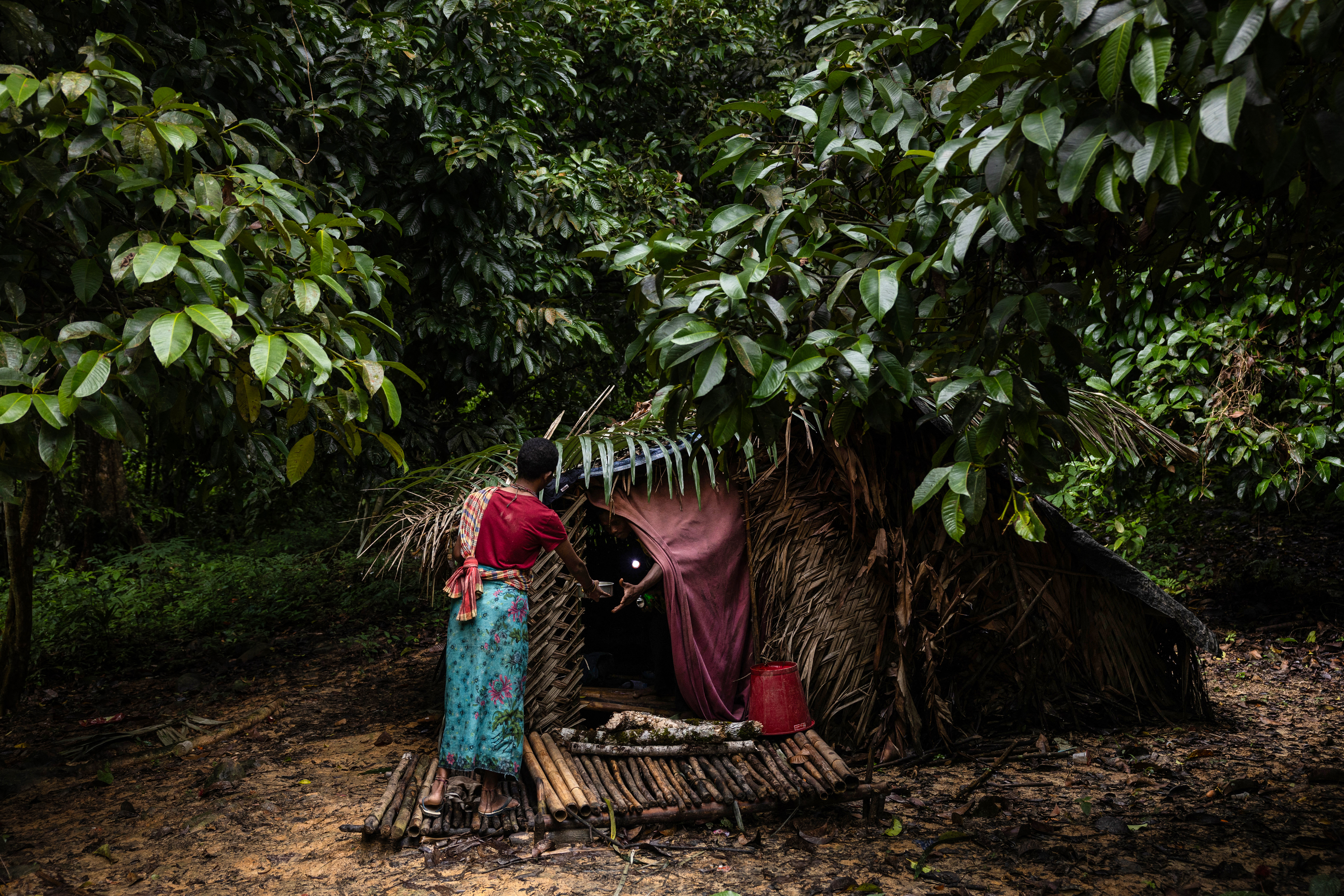 The change comes with challenges: living in the modern world requires cash, so men work on rubber plantations for $3-8 a day, while women make pandanus leaf bags to sell. Some have smartphones and the community's children live in a village 10 kilometres (six miles) away during the week for school.