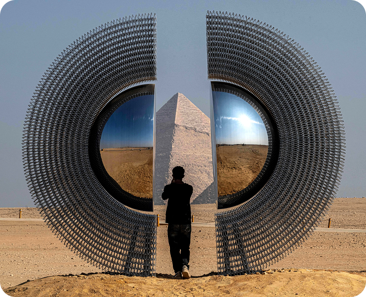 Une oeuvre monumentale de Michelangelo Pistoletto exposée au pied des pyramides