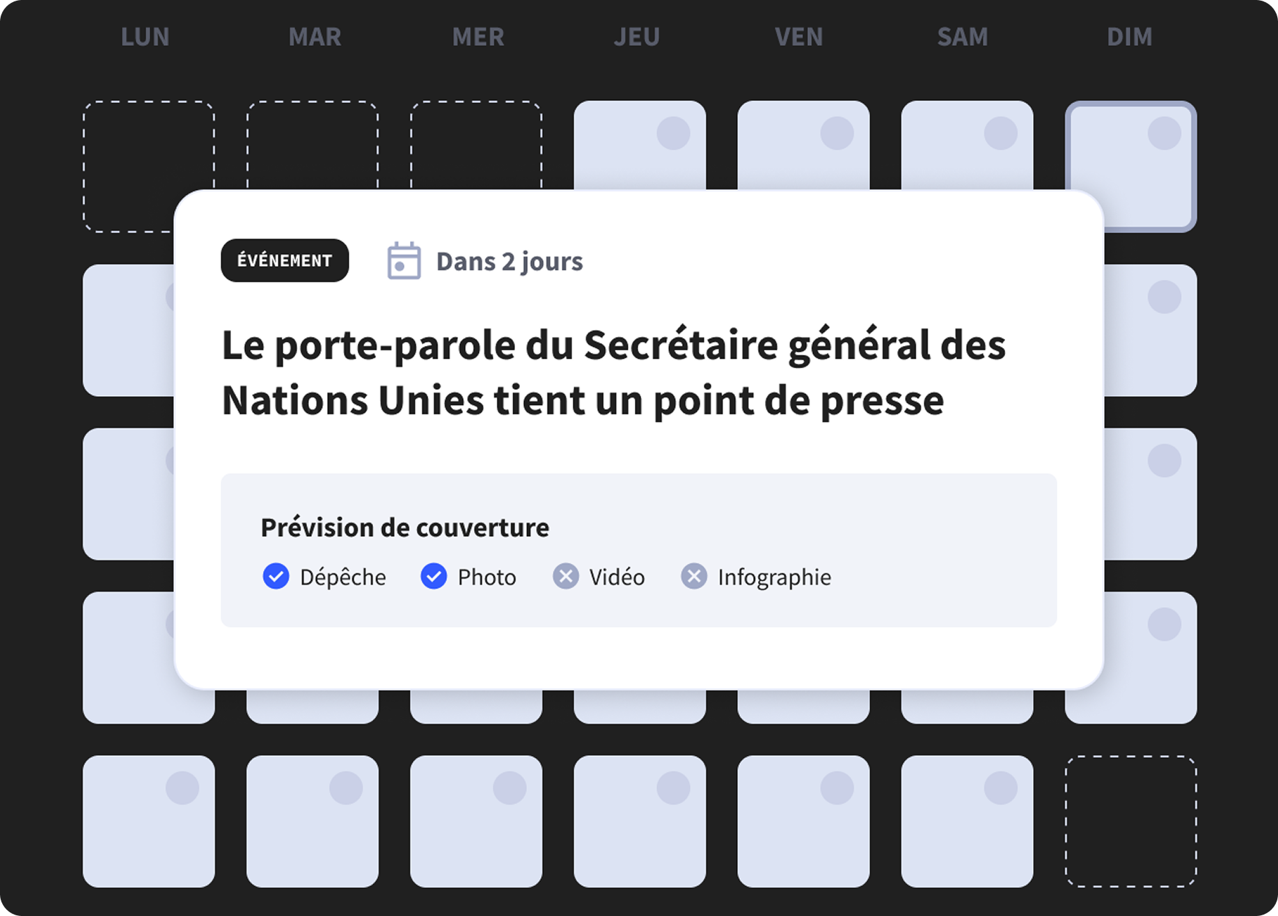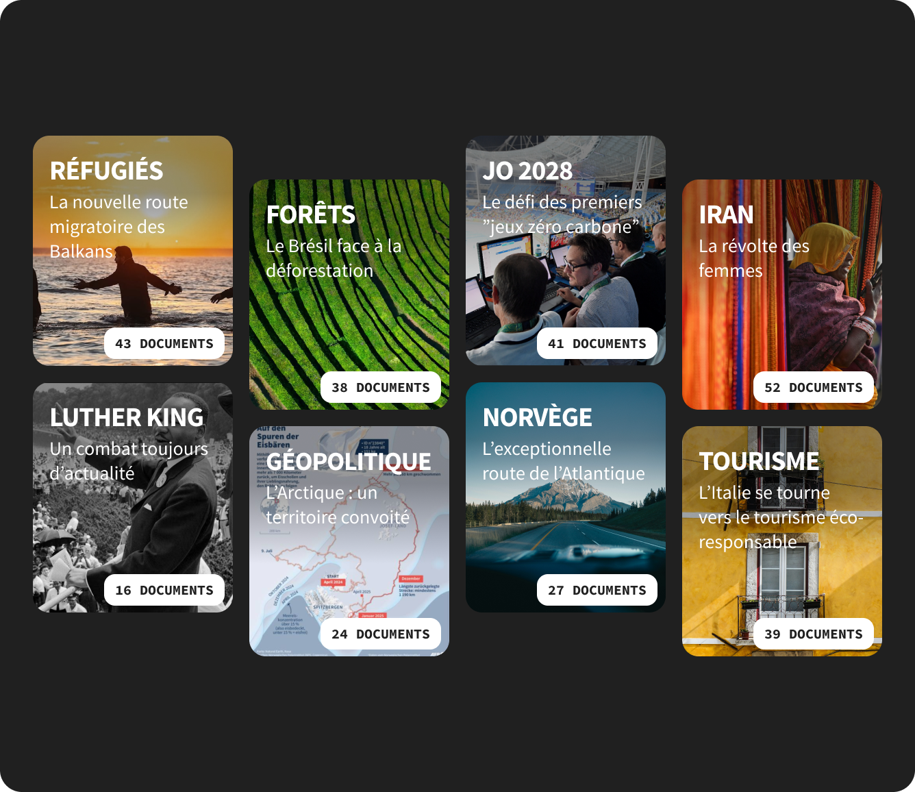 Profitez des sélections et dossiers multimédias déjà conçus par les journalistes de l'Agence avec un large panel de sujets traités et une mise à jour régulière.