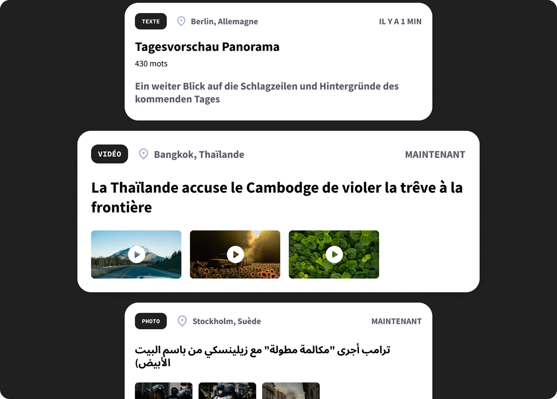 - Dépêches AFP en 6 langues, photos, infographies et vidéos brutes ou prêtes à publier