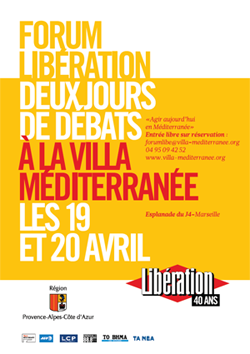 Dans le cadre de Marseille Provence 2013, capitale européenne de la culture, et à l'occasion de l'inauguration de la Villa Méditerranée, Libération s'installe pour la première fois à Marseille. Les 19 et 20 avril, une dizaine de débats sur le thème " Agir aujourd'hui en Méditerranée". Pour débattre de la Méditerranée, celle d'aujourd'hui et de demain : des artistes, des intellectuels, des hommes politiques et des militants de toutes les nationalités.